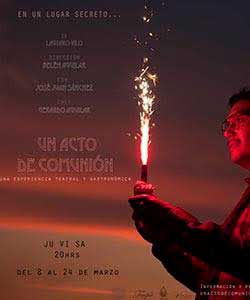El teatro a veces pide permiso: manda una invitación, nos tranquiliza con una sinopsis, nos hace creer que “tendremos la razón” al vendernos un boleto —cual viles clientes—; frecuentemente tiene el recato de mantener sus planteamientos dentro de un mundo ficcional en un espacio delimitado por un escenario claro, separado del mundo “real” —de “nuestro mundo”—, con una división imaginaria tornada convención: la cuarta pared. Pero a veces no hace nada de esto. En producciones recientes, como Un acto de comunión —un texto del argentino Lautaro Vilo estrenado en 2004 con él como intérprete, y ejecutado ahora con maestría por José Juán Sánchez gracias a la dirección de Belén Aguilar— el teatro se extralimita.
