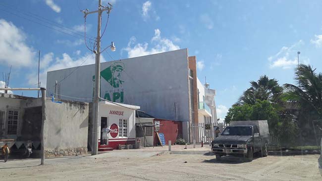 Efectivamente, la construcción de fachada blanca y ventanas verdes tiene un esténcil que dibuja una cara conocida. Es el museo A Pedro Infante. El “API”, como se anuncia en el largo camino que lleva a Isla Arena.