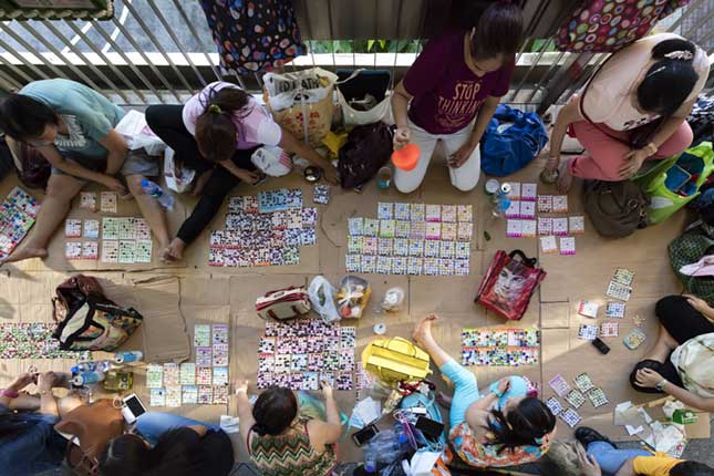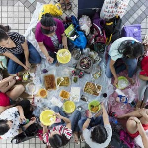Vemos cómo es, desde su perspectiva, un día de descanso para las trabajadoras domésticas indonesias y filipinas que emigraron a Hong Kong en busca de oportunidades. Y, como en muchas ocasiones, el sueño migratorio no es sino otro tipo de lucha por la supervivencia. Estas mujeres, lejos de sus familias y a falta de una verdadera integración social en el país al que han llegado, conviven entre ellas un día a la semana en algún lugar de la gran metrópolis hongkonesa. Juntas descansan, juegan, cocinan, comen, charlan… Salinas nos sugiere un discurso que gracias a su perspectiva aérea y a sus encuadres, se aleja de lo documental. Los encuadres y el punto de fuga central parecen exponer a estas mujeres como encerradas, en la jaula de su condición misma.