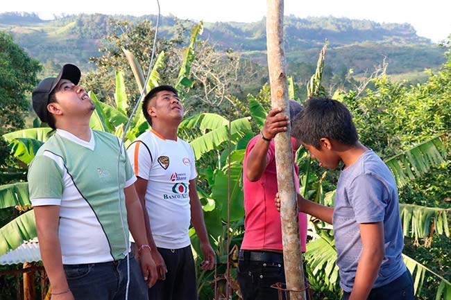 Cargados con cables, dos antenas, metros de alambre y una computadora, Mariano, de 23 años, y su hermano Santiago, de 18, salieron en su Volkswagen al barrio de San Martín para la instalación del séptimo nodo, en una zona rodeada de milpa, plátanos y árboles de guayaba a la que aún no llegaba la señal. Al llegar a la casa para realizar la instalación, la familia ya tenía un bambú colocado en la azotea que pronto fue sustituido por un tronco de seis metros para mejorar la conexión entre nodos.