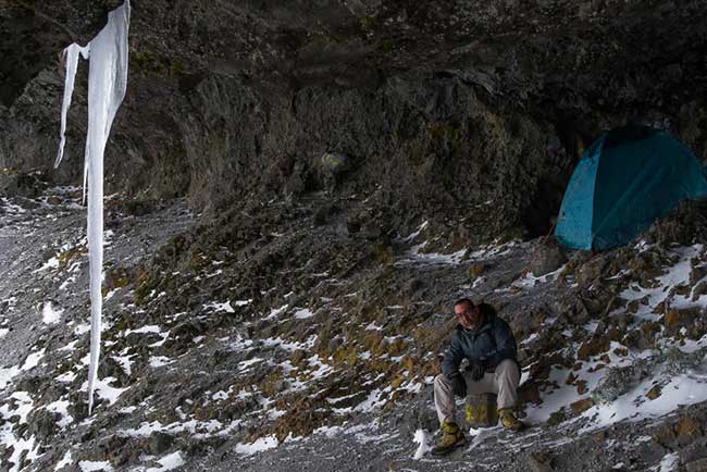 Juan Manuel Gómez (autorretrato). Campamento solitario en la cima de La Malinche, Tlaxcala, México, enero de 2016.