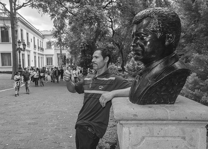 La galería es elocuente y no sólo por la costumbre o necesidad de eternizar la investidura del poder en tercera dimensión: más allá del valor estético de las esculturas, la iconografía me remite al arte religioso, o quizás al monumentalismo de los estadistas autoritarios. Vicente Fox, por ejemplo, escogió ser inmortalizado con una niña de rasgos y vestimenta indígenas agarrada de su pantalón mientras saluda con una V. Gustavo Díaz Ordaz luce retocado con una dentadura y una nariz más discretas que las reales. Carlos Salinas es probablemente el más parecido a sí mismo: ahí está la mirada de quien no ve. Peña Nieto, por su parte, parece más humano en su versión metalizada.