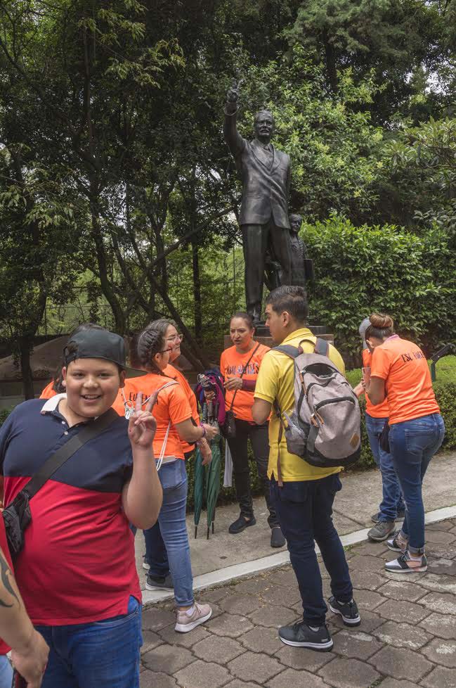 Me detengo en el primer salón: una biblioteca de maderas finas con libros empastados, como los que salen en la televisión, sin huellas de ser consultados. El joven que vigila que la gente no se salga del camino marcado, a quién llamaremos Santiago, accede a hacerse a un lado para platicar unos minutos. Tiene 16 años y es parte del equipo de cuidadores becados: un grupo de apenas una decena de estudiantes menores de edad. Quiero saber qué es lo que más preguntan o comentan los visitantes.