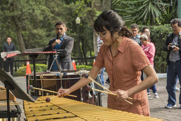Un grupo de música entretiene al público en el patio exterior de la casa principal. © Gustavo Gatto