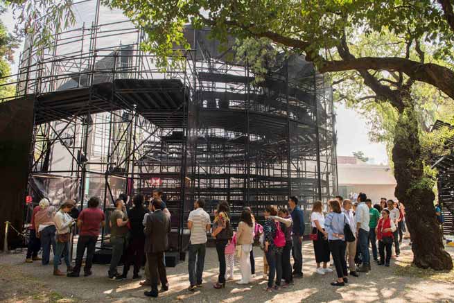 En la explanada del Museo Tamayo hay un pequeño foro negro, abierto, expuesto y, como muchos de sus antecesores, destinado a desaparecer. Esta reproducción modernizada de un teatro al aire libre que emula los que había de este tipo durante el Renacimiento inglés, se montó desde el 4 de abril en el marco del proyecto Teatro en el Parque. En su primera edición, este evento pone en escena siete obras escritas por, o relacionadas con, William Shakespeare. Mientras que algunas de ellas son representaciones tradicionales —apegadas a la traducción de las originales—, otras son adaptaciones o incluso ejercicios deconstructivos de los textos. Un ejemplo del segundo caso es Mendoza (dirigida por Juan Carrillo) que es una reinterpretación de Macbeth situada en la Revolución mexicana, y otro es Romeo y Julieta de bolsillo, un montaje de Alonso Íñiguez que desmenuza y convierte en comedia la tragedia más conocida de Shakespeare.