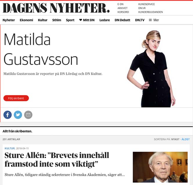 Perfil de la periodista cultural Matilda Gustavsson, que reveló el escándalo en las páginas del diario sueco Dagens Nyheter