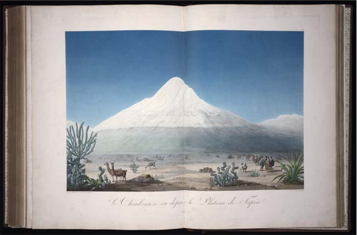 Vista del Chimborazo, Vues des cordillères et monuments des peuples indigènes de l’Amérique, 1810, F. Schoell publisher. Cortesía de: Beinceke Rare Book and Manuscript Library, Yale University, Folio Q115 H84 1A.