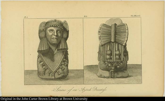 “Sacerdotisa azteca”, en Researches concerning the institutions and monuments of the ancient inhabitants of America (translation of Vues des cordillères et monuments des peuples indigènes de l’Amérique), London, Longman, Hurst, Rees, 1814. Cortesía de: John Carter Brown Library, Brown University.