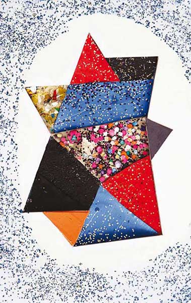 Por su parte, Rojo eplica su selección cromática: “Pensé, al tratar el tema del polvo, que debía manejar tonos grises, usar el negro, dar una perspectiva lúgubre. Pero el texto de Kraus es luminoso. Por lo tanto esa luz me permitió pensar en lo colorido, en el polvo de estrellas. Los astros siempre tienen colores, las estrellas son luminosas. Eso plasmé. Muchos pensadores dicen que somos polvo de estrellas”.