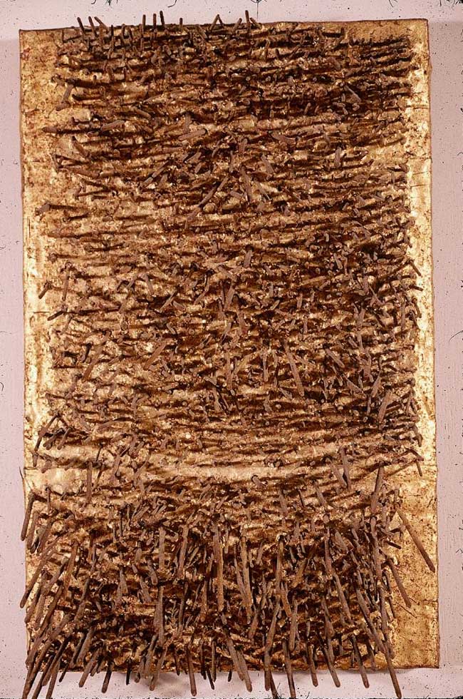 Mathias Goeritz, Mensaje no. 7 C. Clavos, pan de oro y madera, 1959. Fotografía: Pedro Cuevas. Archivo Fotográfico “Manuel Toussaint”. Instituto de Investigaciones Estéticas, UNAM.