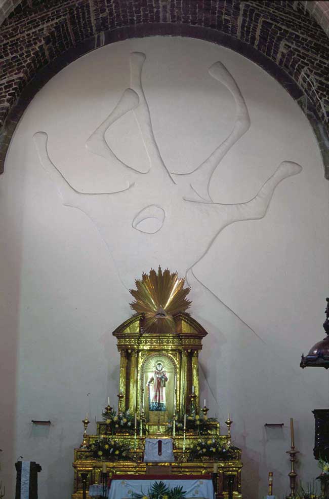 Mathias Goeritz, La mano divina. Relieve en yeso, 1954. Iglesia de San Lorenzo, México, D.F. Fotografía: Michel Zabé. Fondo Michel Zabé. Archivo Fotográfico “Manuel Toussaint”, Instituto de Investigaciones Estéticas, UNAM.