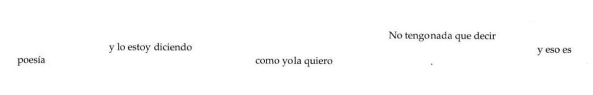 El silencio es un recipiente vacío en el que se puede verter cualquier cosa. Cage va de la poesía a Bach y Beethoven, de decir que es necesario destruir el pasado y dejar para otro momento la preocupación sobre la incertidumbre del porvenir, a hablar sobre el esfuerzo que conlleva separar la mente del oído. Salta de un tema a otro sin atisbos de secuencialidad. De eso se trata una charla sobre la nada. Antes de que aparezca un hilo del cual tirar, antes de que una idea pueda servir para el recuerdo de otra más, cambia la dirección. Como un cuarto de espejos sin salida. Hacia el final de la presentación, la escultora Jeanne Reynal interrumpe al músico. Le grita que no puede soportar otro minuto más esa farsa. Se desata el barullo. Cage ha estado desvariando durante cuarenta minutos.