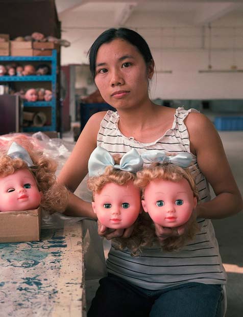 El cambio al formato de exhibición en galerías y museos también le permitió a Wolf liberarse de las restricciones de la fotografía editorial (como el tamaño de la página) y expandir los efectos de sus obras realizado instalaciones especiales para exhibirlas. Un ejemplo es su proyecto The Real Toy Story, que realizó alrededor de 2004. Para esta obra, Wolf recolectó una enorme cantidad de juguetes de plástico en California hechos en China y los colocó todos juntos en una instalación en la que también había fotos de los trabajadores de las fábricas de juguetes. El efecto es avasallador y nos hace pensar en la producción en masa –en la que China es un gigante– y la cuestión del valor de esos objetos que están hechos para ser desechados. Los retratos de los trabajadores hacen que de pronto los jugetes ya no sean solo eso, sino un reflejo de la vida de miles de personas en China y de sus condiciones de trabajo.
