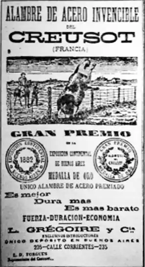 FIGURA 2: Aviso de la fábrica de alambre de púas Creusot, publicado en el periódico El Estanciero en octubre de 1882.