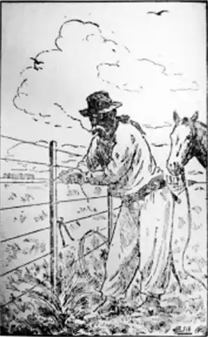 FIGURA 3: Paisano arreglando el alambrado (1961), dibujo de Eleodoro Marenco.
